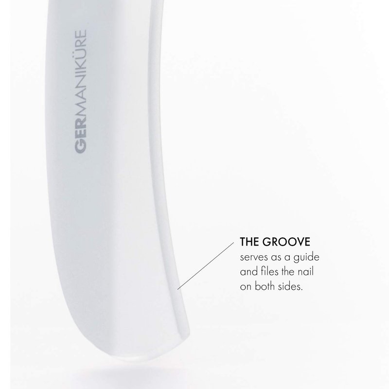 Our Moonfile was designed for smoothing nail edges, the inner curve of this moon file has a shallow groove cut into it. The etched texture in this curve shapes the nail file edge quickly and effortlessly as the nail is swept through the groove. A foolproof way to perfectly edge and shape your nails, providing a superior smooth nail in only a few strokes.