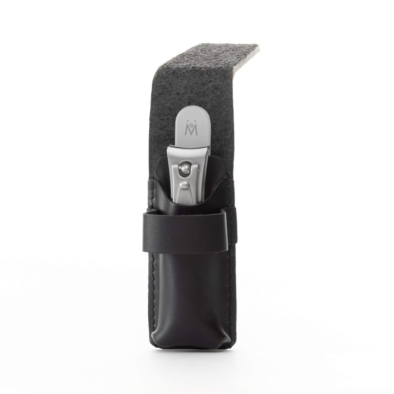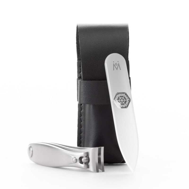 GERMANIKURE Nail clipper and Glass Nail File Set in Black Leather Case - Made in Solingen Germany of FINOX Stainless Steel, Glass Nail Care Supplies Made in Czech Republic