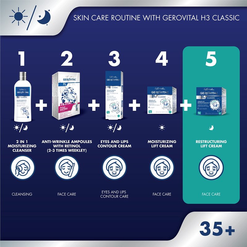 - ✅ 𝐈𝐍𝐓𝐄𝐍𝐒𝐈𝐕𝐄 𝐍𝐈𝐆𝐇𝐓𝐓𝐈𝐌𝐄 𝐑𝐄𝐒𝐓𝐑𝐔𝐂𝐓𝐔𝐑𝐈𝐍𝐆: GEROVITAL H3 CLASSIC Restructuring Night Cream is specially formulated to work overnight, providing intensive restructuring and regeneration to help restore the skin’s natural balance and vitality.