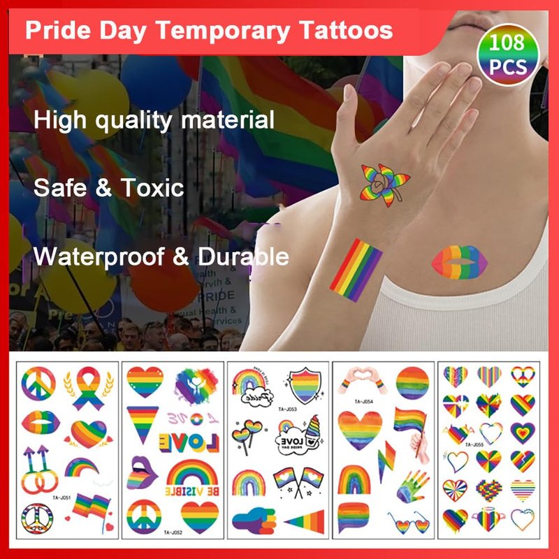 - 🏳️🌈【Package Content】You will get 10 sheets temporary waterproof tattoos for gay pride, 108 pieces in total.Sufficient quantity and various styles can add more fun to the pride parade and celebrations.
