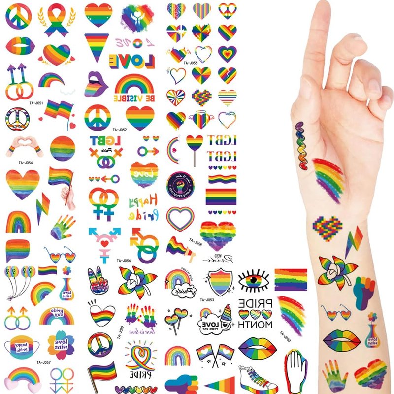 - 🏳️🌈【Pride Day Theme Tattoos】These tattoo stickers for LGBT Pride Day contain many rainbow colored elements, such as the rainbow flag, lips, love hearts, gender symbol, etc.. The designs can make you more attractive.