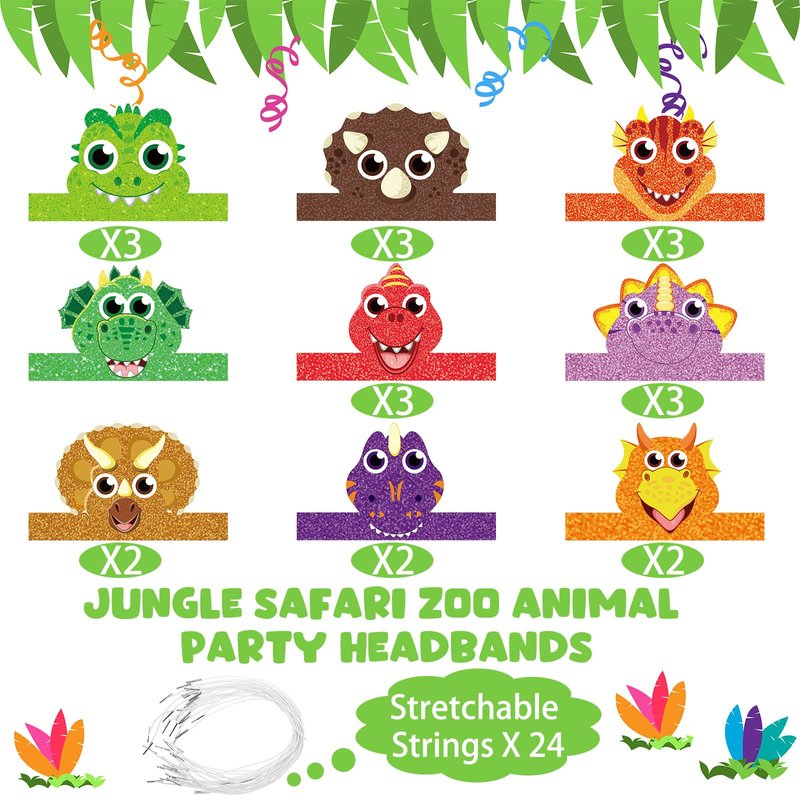 Gersoniel 24 Pcs Dinosaur Birthday Party Hats, Favors, Headbands, and Paper Crowns for Kids - Dinosaur Theme Decoration