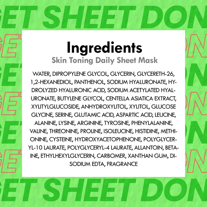 - YOUR SKIN’S DAILY BESTIE. Say goodbye to dull routines and hello to skincare that's as fun as it is effective! Get Sheet Done Hydrating Sheet Mask delivers a burst of moisture, paired with a dash of humor. Fortified with Centella Asiatica and Amino Acids, it refreshes and revitalizes skin, ideal for the busy, bold, and pun lovers.