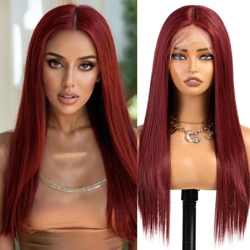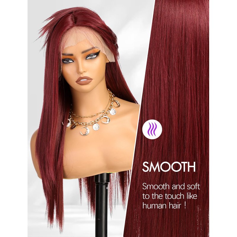 Getshow Lace Front Wig Synthetic Long Straight Gluless Red Wigs With Baby Hair For Women 26Inch