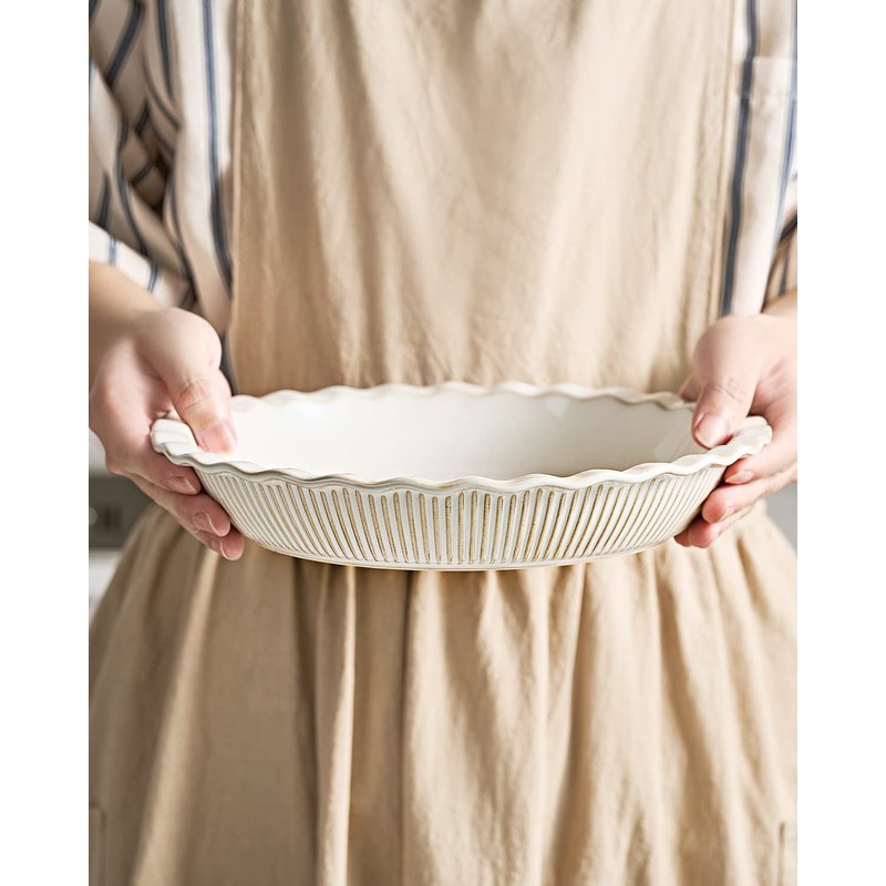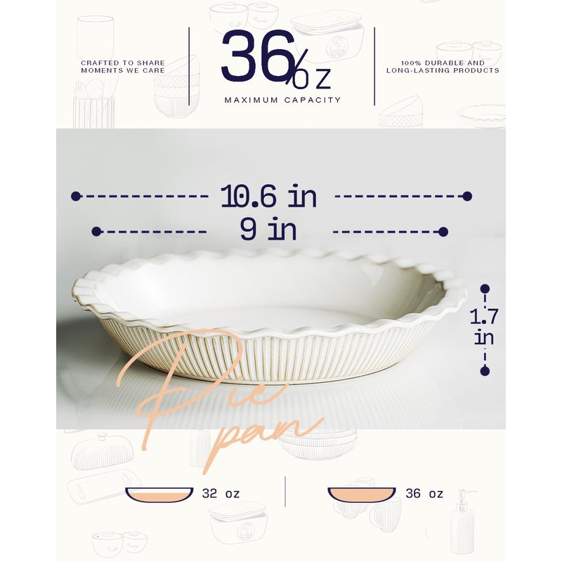 - 【Versatility】The ceramic baking dish is versatile enough to be used for various types of pies, quiches, or other baked goods, accommodating different recipes and sizes