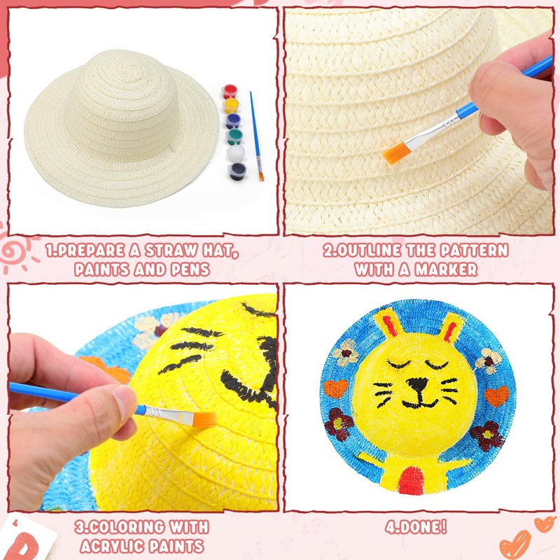 - Mindful Combination: this set offers a thoughtful combination of straw hats and acrylic paints, encouraging creativity and individuality; By decorating their own hats, children can explore their love for arts and crafts that forms a foundation for artistic development