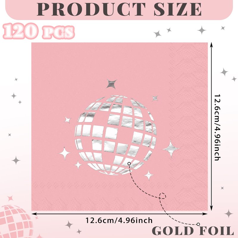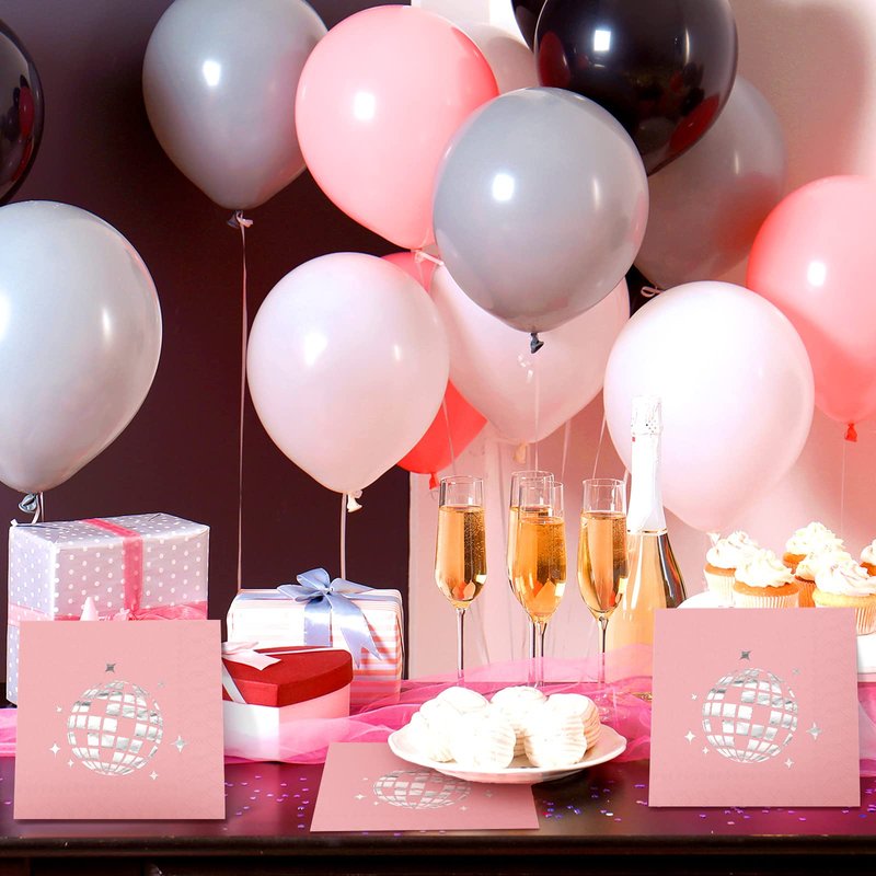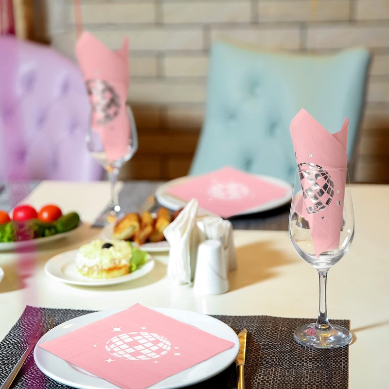Geyoga 120 Sheets 70s Pink Disco Party Napkins Stylish Disposable 80s 90s Party Supplies Disco Ball Napkins Paper for Engagement Birthday Graduation Baby Shower Bachelorette Hip Hop Party Decorations