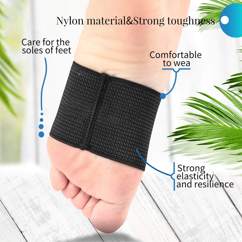 The foot protector is made of nylon material, which has good toughness, strong wear resistance and elastic force; The elastic band is made of polyester yarn and latex silk, which has high tensile strength and good wear resistance and can improve your foot problems.