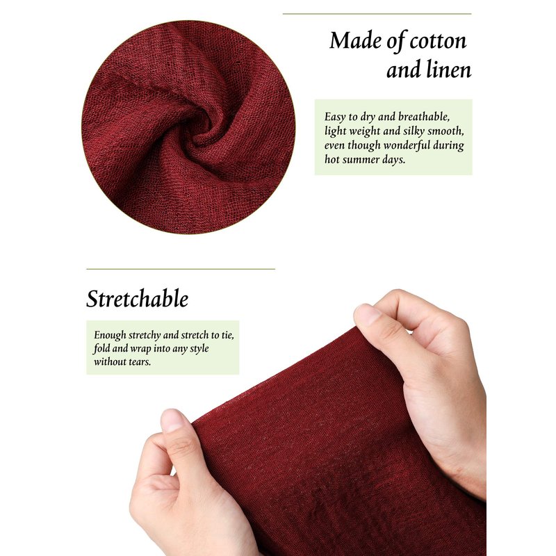 - Soft and comfortable: these scarves are made of cotton and linen, lightweight, soft, skin-friendly, comfortable and no sultry feeling; The scarves set with 6 colors for you to choose, detailed information please refer to pictures, enough to meet your needs