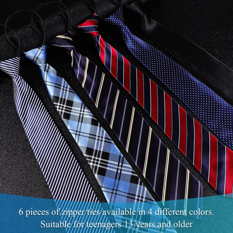 Geyoga 6 Pcs Zipper Ties for Boys Girls Men Women Pre Tied Adjustable Necktie for School Uniform Graduation Business Wedding (Classic Style)
