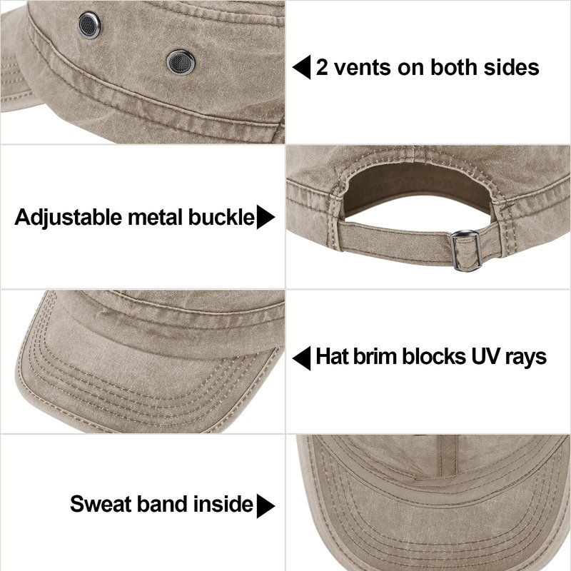 Geyoga Army Cap Cadet Military Hat for Men Women Washed Cotton Flat Top Cap Unisex Baseball Cap Adjustable Military Hat