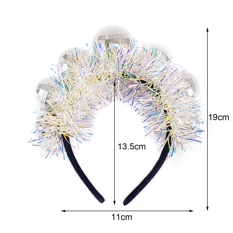 - One Size Fits Most People: Disco ball headpiece are about 12.5 x 16.5 cm/ 4.92 x 6.5 inches,and each ball is 2 cm/ 0.78 inches in diameter,and with elasticity, the silver mirror ball headpieces can fit most people's head circumference,suitable for most women and girls, is a good accessory choice