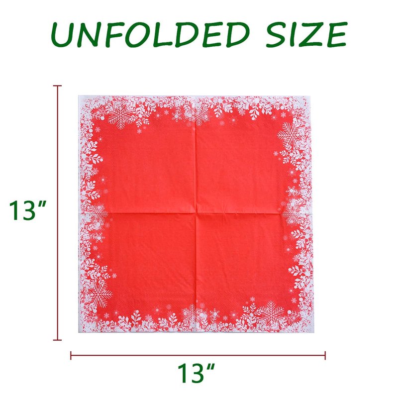 - 【UNIQUE DESIGN】The holiday napkins disposable have unique pattern, which contain classic Christmas elements such as snowflake. Christmas dinner napkins paper classic color matching will give you and your family an unforgettable Christmas.