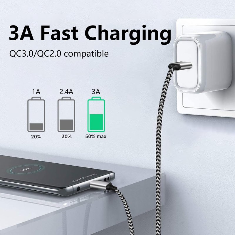 - 【Fast Charging and Safe】Charge your device with 3A fast charge technology, built-in 56KΩ resistor incredible safety, protect your devices and charging adapters from damage.