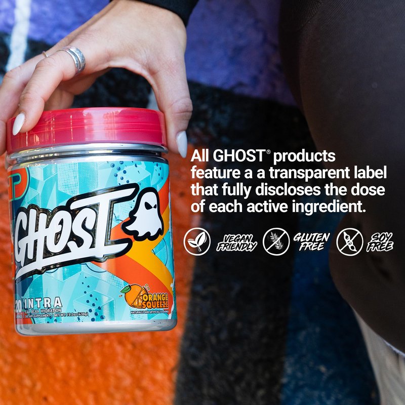 - Total Transparency: All GHOST products feature a transparent label that fully discloses the dose of each active ingredient. Zero proprietary blends means you know what you’re getting in each and every scoop. GHOST Intra is vegan friendly, gluten free, and soy free.