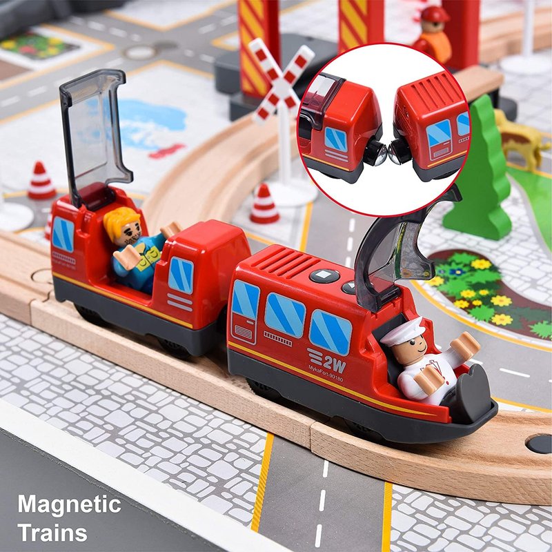 - 🎁SAFETY FEATURES – This train set fully tested to the highest U.S. ASTM F 963-11 and European EN71 toys safety standards, BPA free. To make sure your child play safe is our No. 1 priority!
