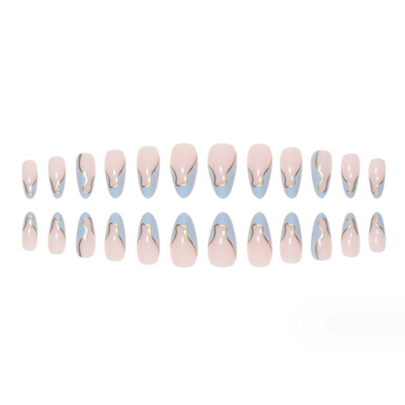 Gifiky Short False Nails Almond Press on Nails French Nails Tips Full Cover Swirl Fake Nails for Women and Girls 24Pcs