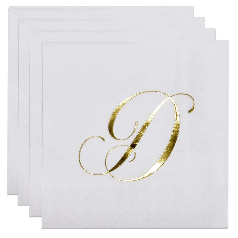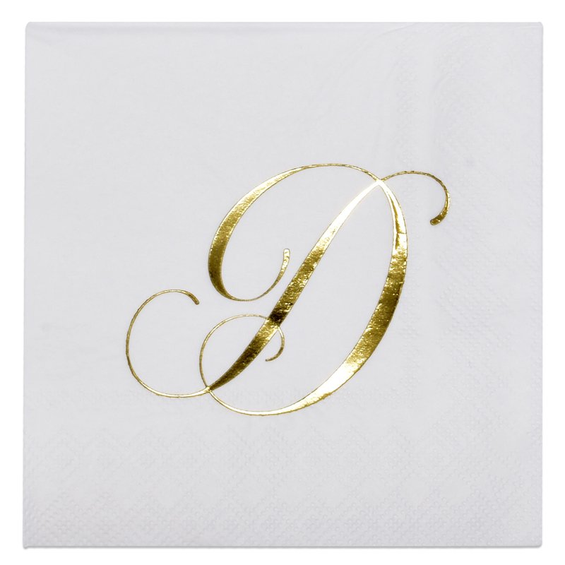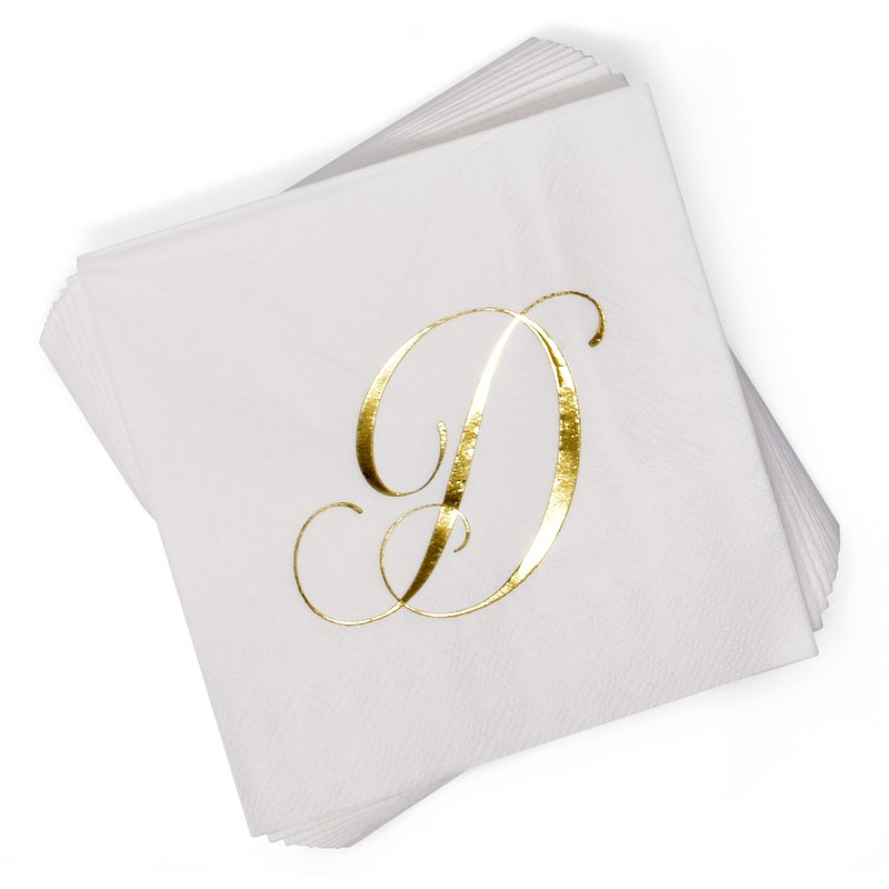 - Monogrammed Cocktail Napkins Serves 100: Gift Boutique square monogram cocktail napkins features the letter D printed in gold foil on white. These napkins will definitely enhance your table and impress your guests. These are essential for providing guests high-end comfort and luxury. Measures:5" x 5" folded and 10" x 10" unfolded.