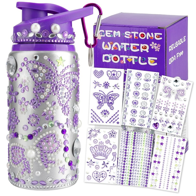 - 【DIY Crafts & Arts】Decorate your own water bottle for girls! Keep kids busy with a simple arts and crafts activity they will enjoy: Peel the glitter gem stickers and stick them onto the water bottle! Let the kids use their unique imagination!