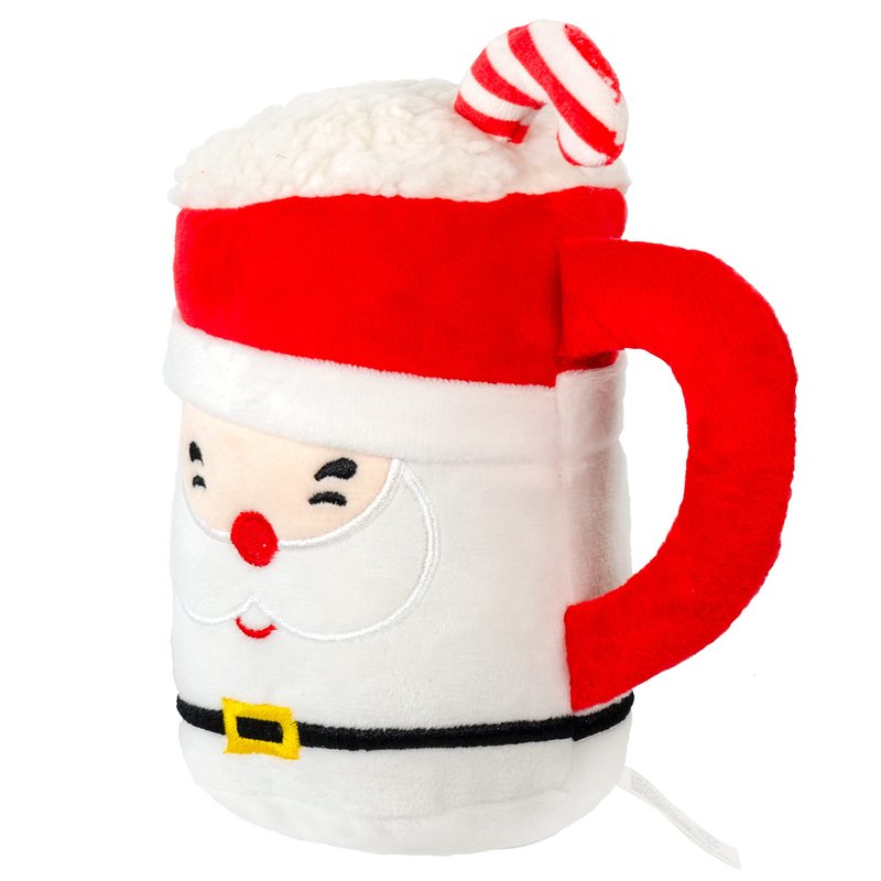 Giftable World Holiday Plush Pet Toy Fun for Christmas Designs with Squeaker Dog Chew Toy (6.5" Santa & Reindeer Cups 2 Pcs)