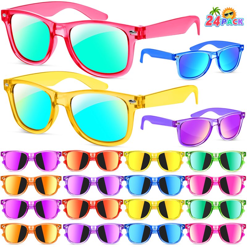 - 【Children's Favorite Summer Color Design 】The color is specially designed for children. Our kids sunglasses party supplies come in multiple summer colors. Boys and girls can both find their favorite color in this kids sunglasses party favors. Not one can say no to these cute summer pool and beach party favors. The translucent frame also makes the glasses look like jelly.