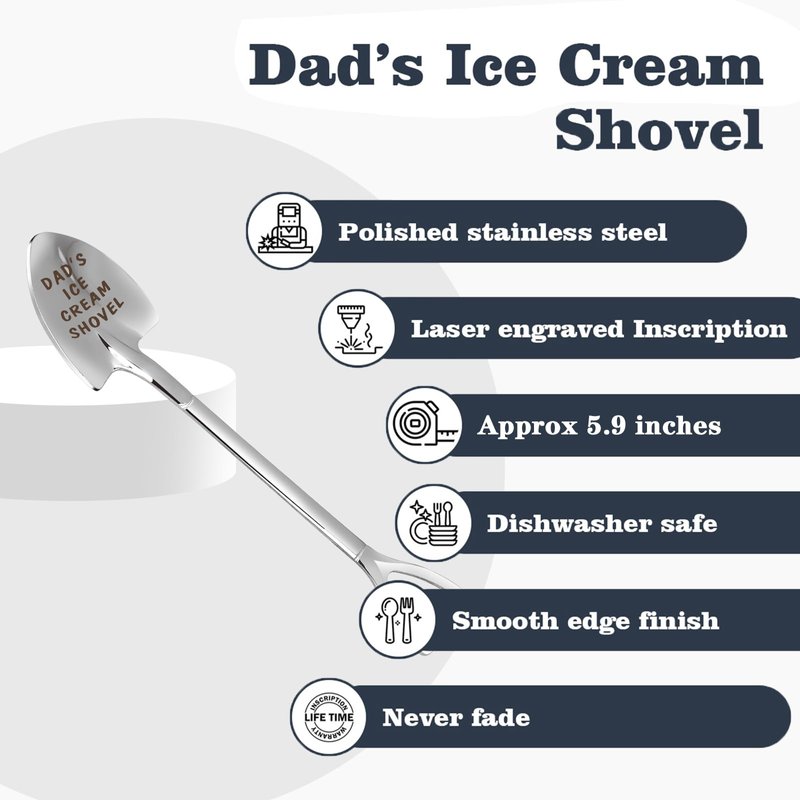 Gifts for Dad Stocking Stuffers for men dad father gifts Dad Ice Cream Spoon Scoop for Ice Cream Lovers, Dad Christmas Gifts for dad from Daughter Funny Engraved Stainless Steel Spoon Shovel