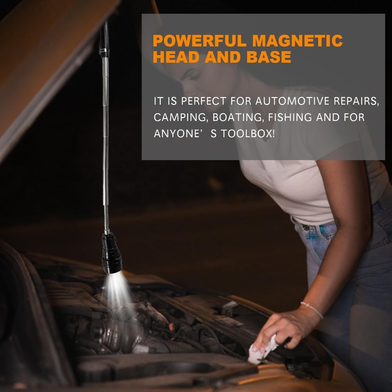 - MAGNETIC PICKUP TOOL WITH LED LIGHTS: Our magnet telescoping tool have strong magnetic head for grip and grab, powerful magnetic base for hands-free use when placed on a metallic surface, 3 ultra LED super bright flashlight provide visibility in dark spaces, 360º flexible 22" long extendable neck adjustable for hard to reach place as nooks or tight angle, pocket clip easily carry. Powered by pre-installed batteries. 2023 Newest Upgraded comes in a great gift box with an extra set of 4 batteries.