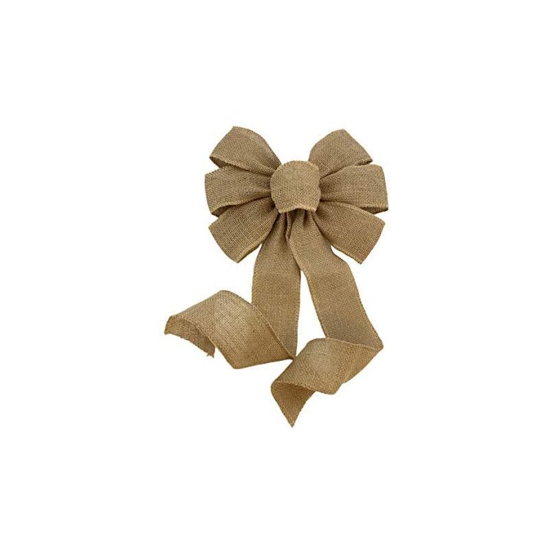 - Ribbon for Gift Wrapping - Rustic Burlap Christmas Bow for Decoration in a Natural Tan Color - 10 inches wide and 18 inches long from top of the bow to the bottom of the tails
