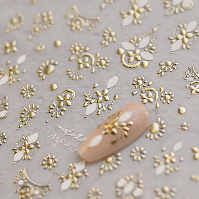 - Package Include: You will get the 1pcs nail decals with unique gold flower patterns. Perfect for women and girls, exquisite nail design, DIY fashion nail.