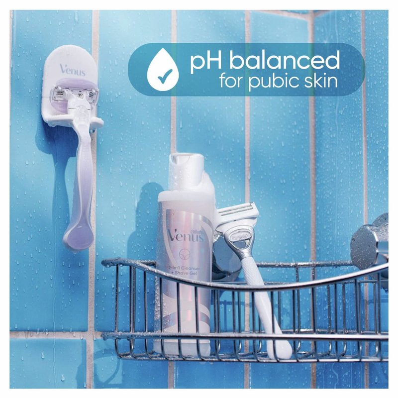Gillette Venus For Pubic Hair And Skin Womens Shaving Kit, Bikini Razors for Women, 1 Venus Handle, 2 Razor Blade Refills, 2 in 1 Cleanser And Shave Gel, Daily Soothing Serum For Intimate Grooming