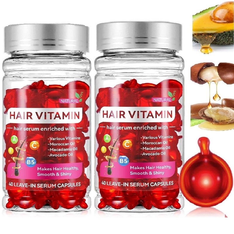 Ginaday 2 Box Hair Vitamins Perfect Treatment Serum Oil Capsules,Enriched with Moroccan Macadamia Avocado Oils Vitamins A C E Pro B5 Hair Serum Oil for Frizzy and Damaged Hair.(80 Pcs)