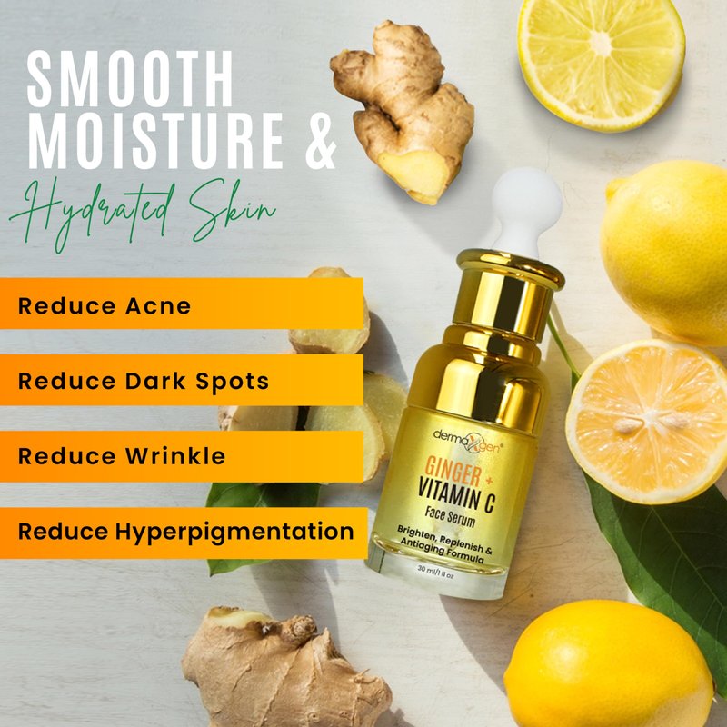 Ginger Face Serum + Vitamin C + Turmeric, Organic Acne Treatment, Clear skin Tone, Hydrate Dull & Dry Skin, Anti-Aging Facial Serum - 1 FL OZ