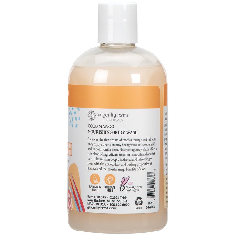 Ginger Lily Farms Botanicals Nourishing Body Wash, Coco Mango, 100% Vegan & Cruelty-Free, Coconut Mango Scent, 12 Fl Oz