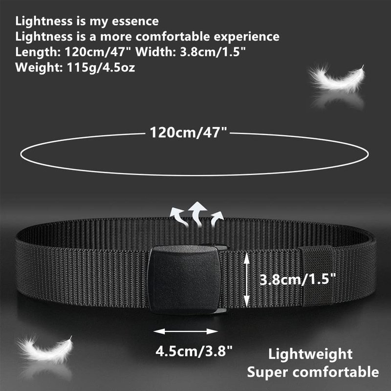 - NON-METAL BELT: Well-designed nylon web belt with YKK plastic buckle. Travel-friendly Non-Metal construction, Nickel Free, Non-Allergic. Allow you to be able to go through a metal detector or airport security without having to take it off.