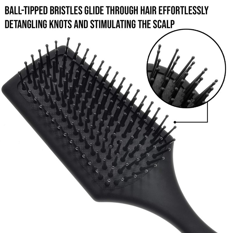 - RUBBERIZED FINISH – This paddle brush has been finished with a matte black material to ensure a solid grip. This material is water resistant, allowing shower use or dry use, and rapid blow-styling, gentle styling, and detangling hair for a smooth finish.