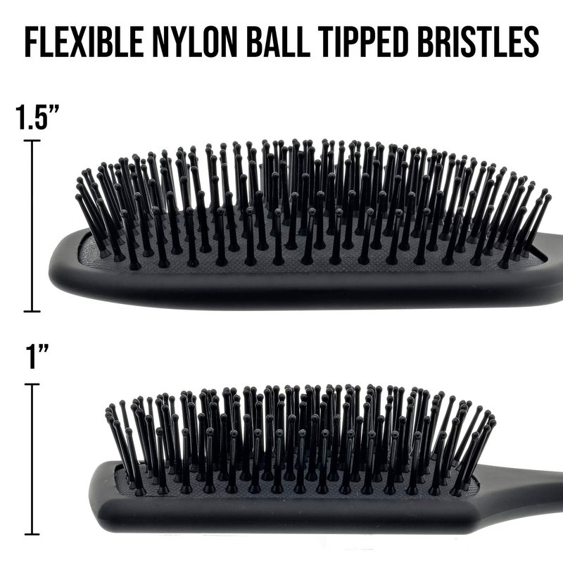 - DETANGLER BRUSH - This brush glides through all hair effortlessly detangling knots without the hair damage caused by other brushes. The ball-tipped nylon bristles and silicone cushion create a pliable but firm experience that is also incredibly durable!
