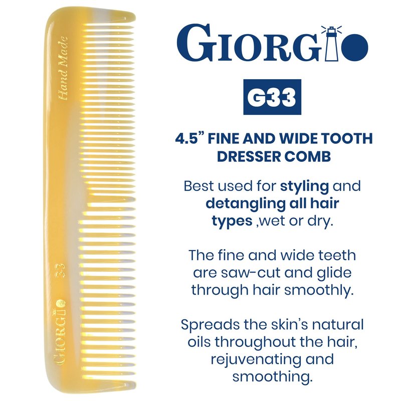 - Giorgio Pocket Comb 4.5 Inch Small Ivory finish. Double tooth thick and fine, a must to keep in your bathroom, car, bag and for travel, fine tooth for straightener and finishing and coarse wide teeth for detangling thick, curly and wavy hair. Professional barber haircut comb for styling and teasing for all hair types, short, long, wet or dry. Fine toothed and detangler comb for hair, beard and moustache