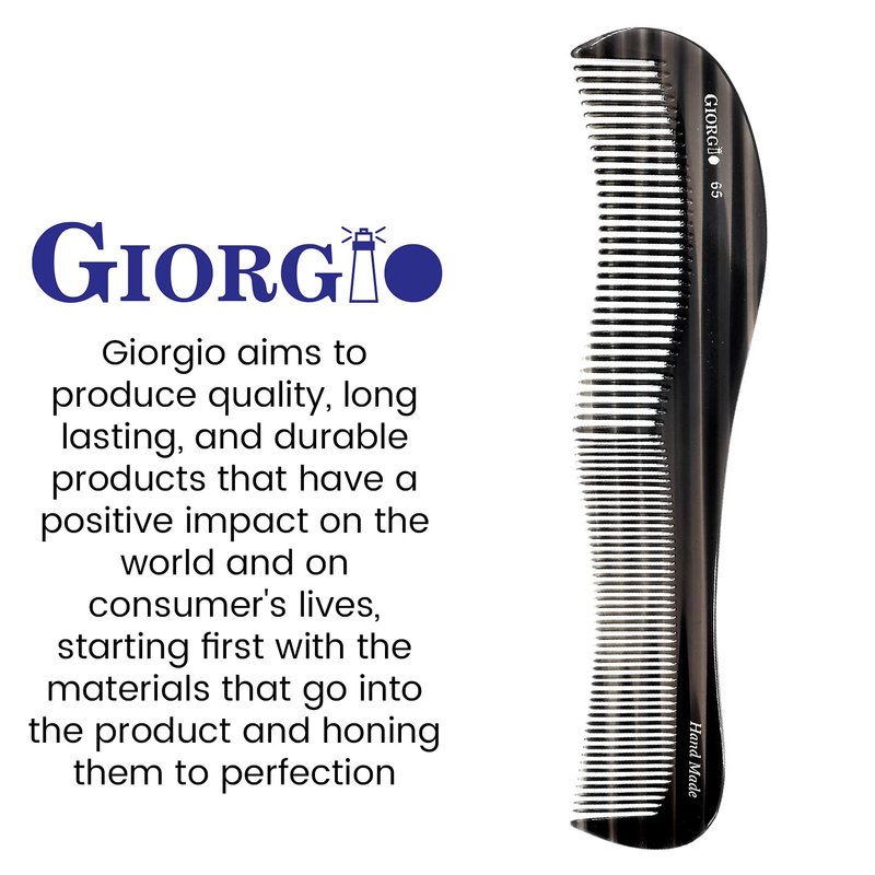Giorgio G65 Contour Comb -Fine Tooth Comb and Wide Tooth Comb for Thick and Thin Hair Styling - Grooming Hair Combs for Men,Women, and Kids - Saw Cut Barber Comb, Handmade Hair Comb, and Hand Polished