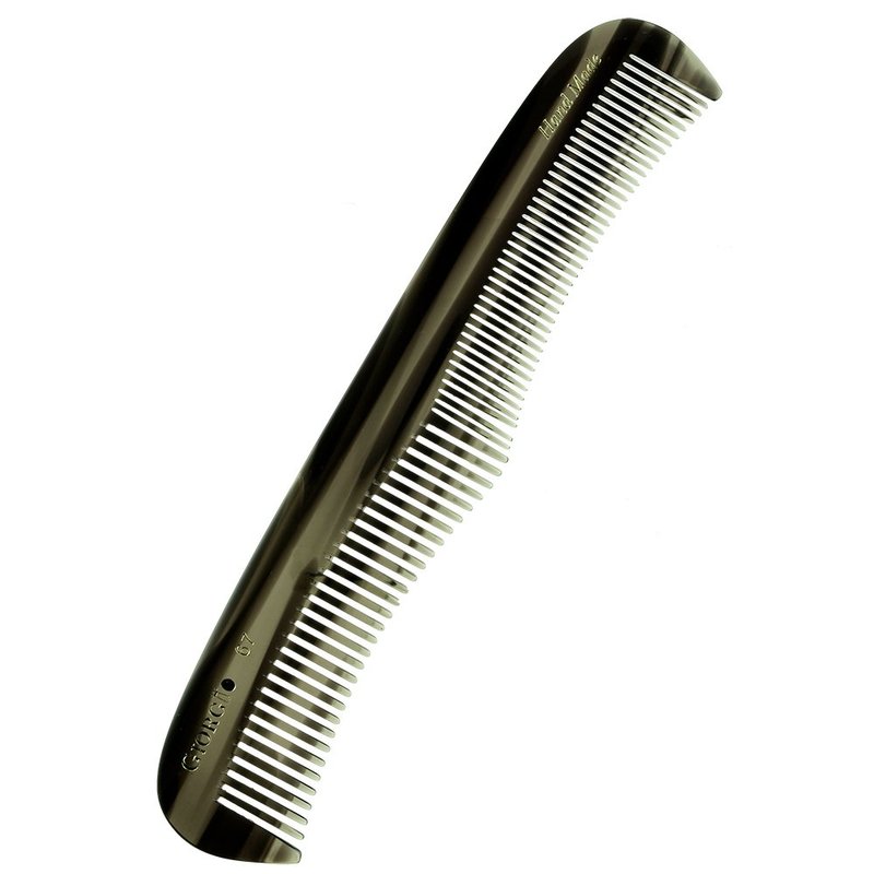 Giorgio G67 7 Inch Coarse / Fine teeth, contour Flexible women and men Hair, Beard & Mustache Dresser black Comb. Hand-Made of quality Durable Cellulose. Saw cut and Hand Polished for ultimate and effortless smooth glide. Prevent Pulling and hair breakage. Rounded tips for sensitive scalps and release of hair's natural oils. Hand Made of quality Cellulose , a non-petroleum base material, that’s why they have minimal static.Smooth, rounded teeth for sensitive skin stimulating the hair cuticle’s and release of hair's natural oils for a hair strong and healthy. Anti-static. A women and men favorite comb for both hair and quick beard and mustache care. Easier to clean than wood. Unlike beard brushes, combs for beard and moustache are best used on damp hair. Ease to clean with shampoo under the tap.