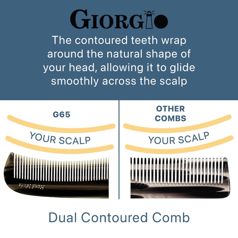 Giorgio G67 Contour Comb - 7" Fine Tooth Comb and Wide Tooth Comb for Thick and Thin Hair Styling - Hair Combs for Men, Combs for Women, and Kids - Saw Cut Barber Comb Handmade Hair Comb for Hair Care