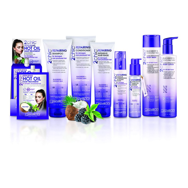 - MOISTURIZING SCALP CARE: 2chic Repairing Leave-In Conditioning & Styling Elixir is powered by our Dual Repairing mix of Blackberry and Coconut Milk to help treat dry, damaged and processed hair. This Repairing Conditioner strengthens and revitalizes hair.