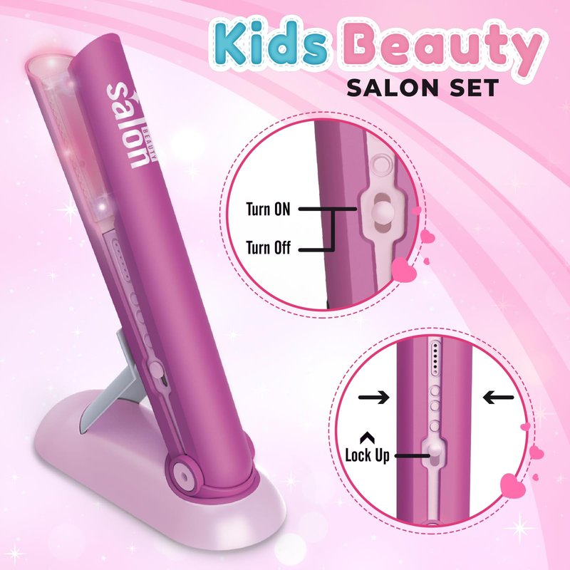 - COMPLETE SET: The Girls Beauty Hair Salon Toy includes a hairdryer, comb, hair straightener, scissors, and other hair styling accessories, giving kids everything they need to create imaginary hairstyles.