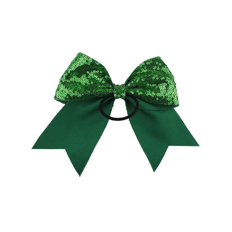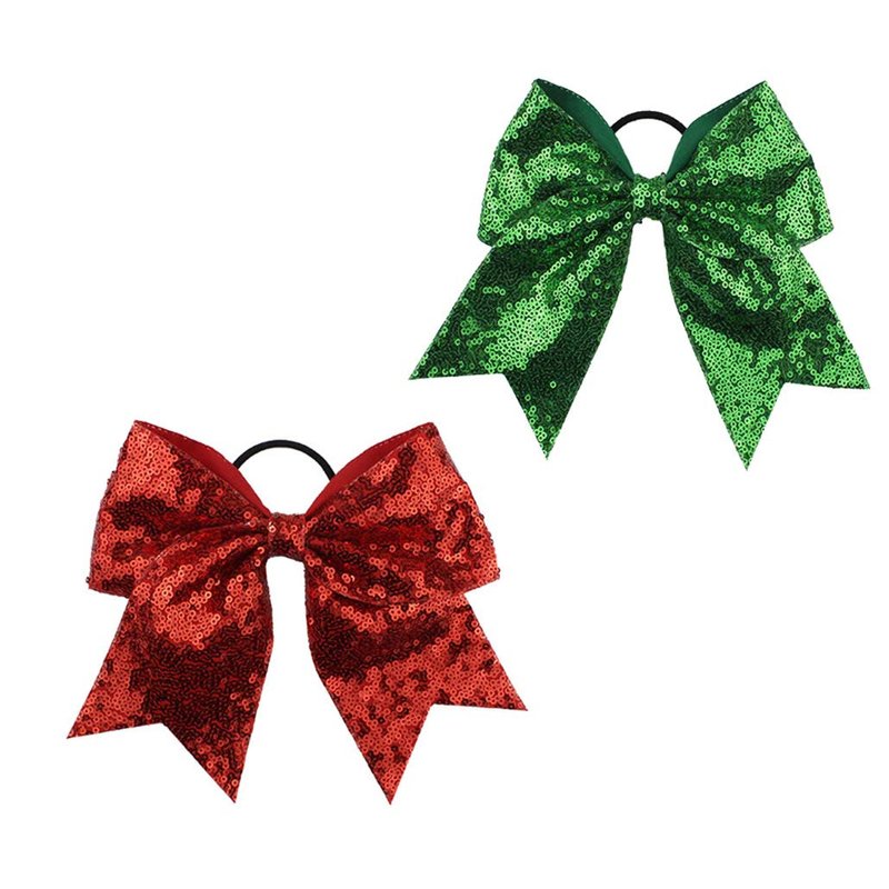 Girls Cheer Bow Ponytail Holder Big Hair Bow Tie with Glitter Sequins Bowknot JB80 (Green Red)
