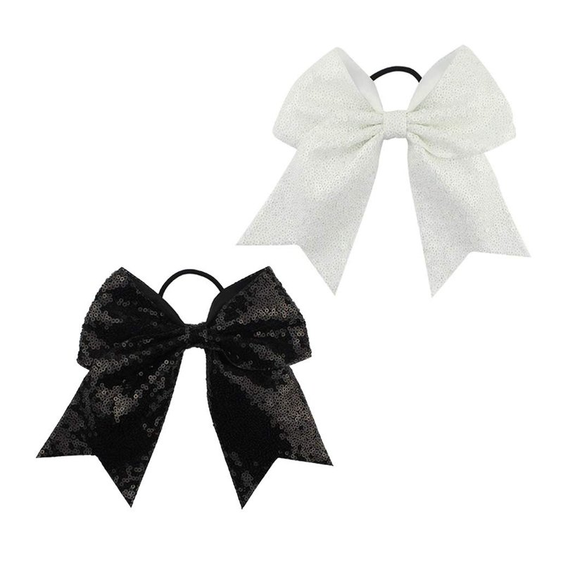 Girls Cheer Bow Ponytail Holder Big Hair Bow Tie with Glitter Sequins Bowknot JB80 (White Black)