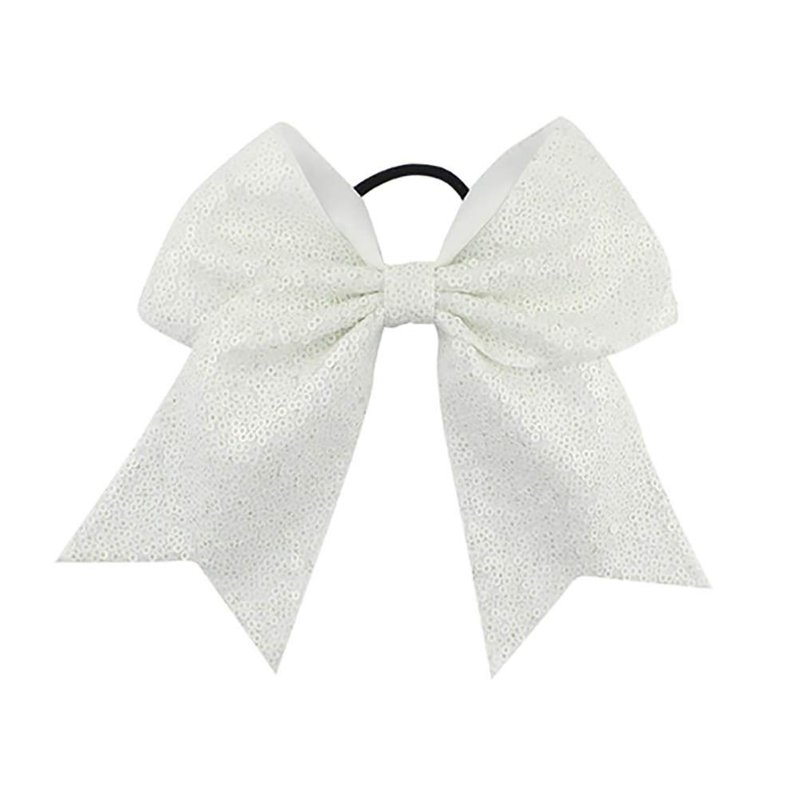Elastic Long Girls Cheer Bow Ponytail Teens Cheerleader Holder Large Big Hair Bow Tie with Glitter Sequins Bow knot Large Classic Hair Accessories
