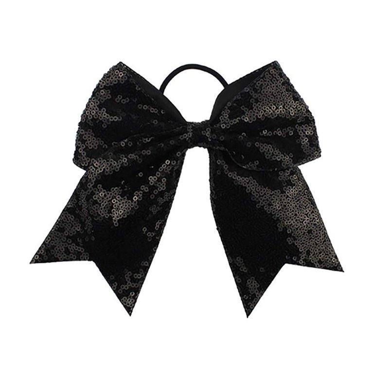 - Girls Cheer Ponytail Holder Big Bows With Glitter Sequins