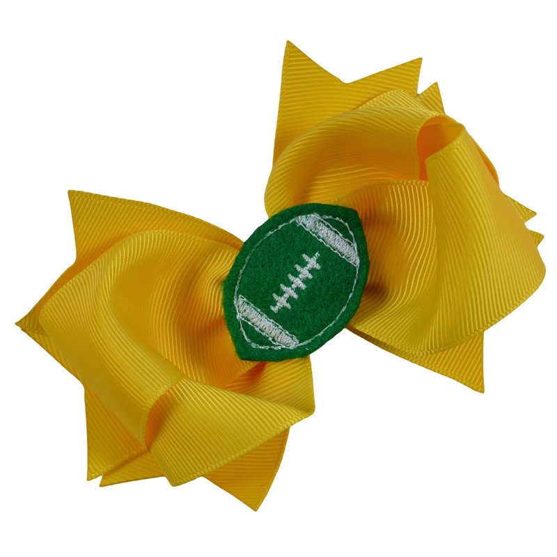 Girls Football Hair Bow 4.5 Inch Embroidered Football Team Hair Bow (Yellow Gold Bow with Green Ball)
