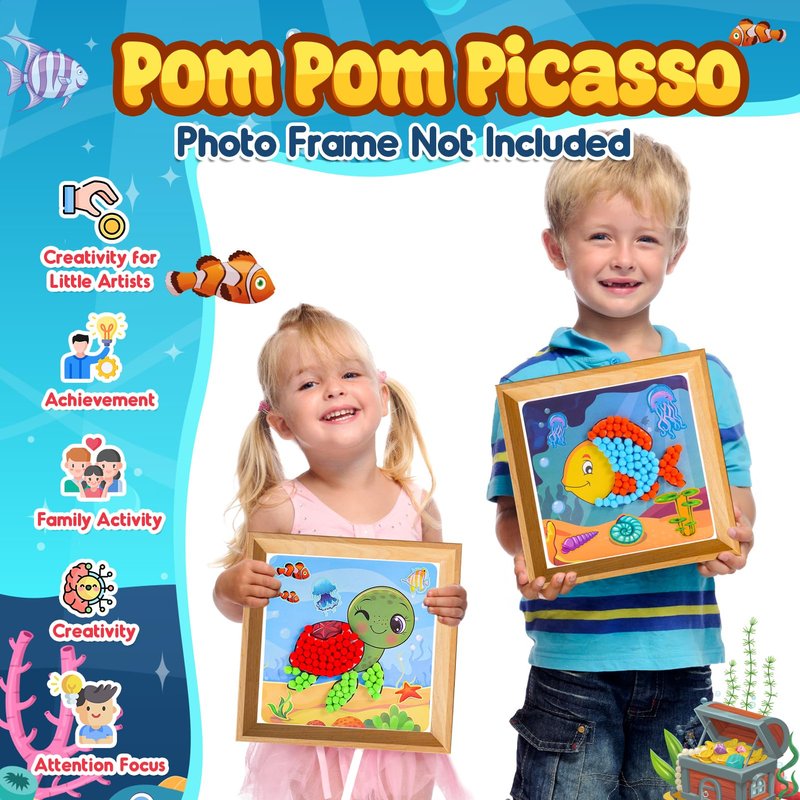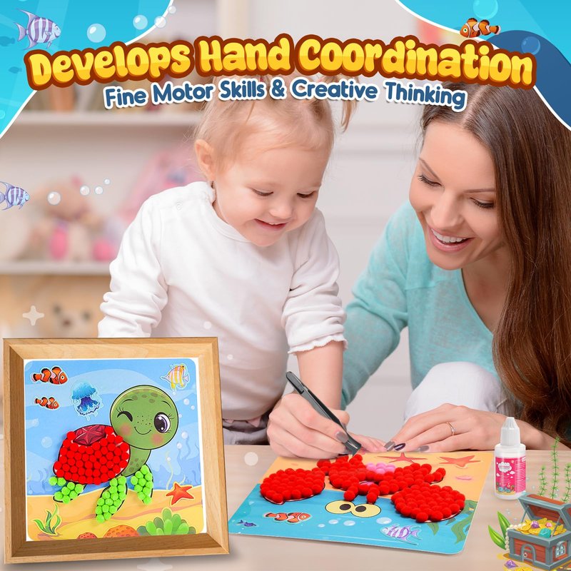 - 【DIY Pom Pom Arts Crafts Activity】- Encourage kids aged 3-6 to explore their artistic side with the DIY pom poms art crafts. Unleash their imagination and fine motor and coordination skills while creating stunning art pieces. Each pattern sparks creativity and allows crafters to create a range of visually stunning pom pom pictures.