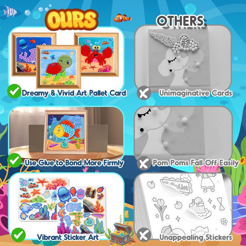 - 【Why Choose Us】- Windidi pom pom art kit features 6 large 7.9-Inch art pallet card, it's easier for children to create their masterpiece with more space to work on. Made from premium multi-layer compressed paper, making them durable and resistant to bending, ensuring long-lasting preservation. Plus, the dreamy and vivid ocean animal designs inspire creativity, making the art experience both fun and engaging!