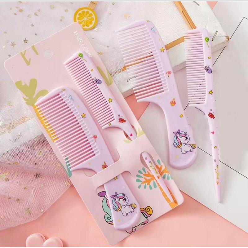 Girls Kids Cute Hair Comb Set, Portable Anti-Static Plastic Hairdressing Comb Hair Comb Gift (Purple unicorn)